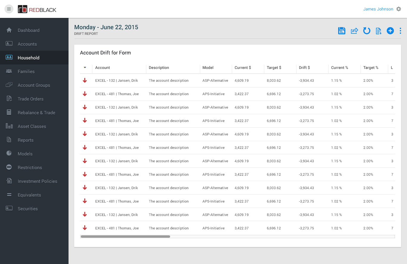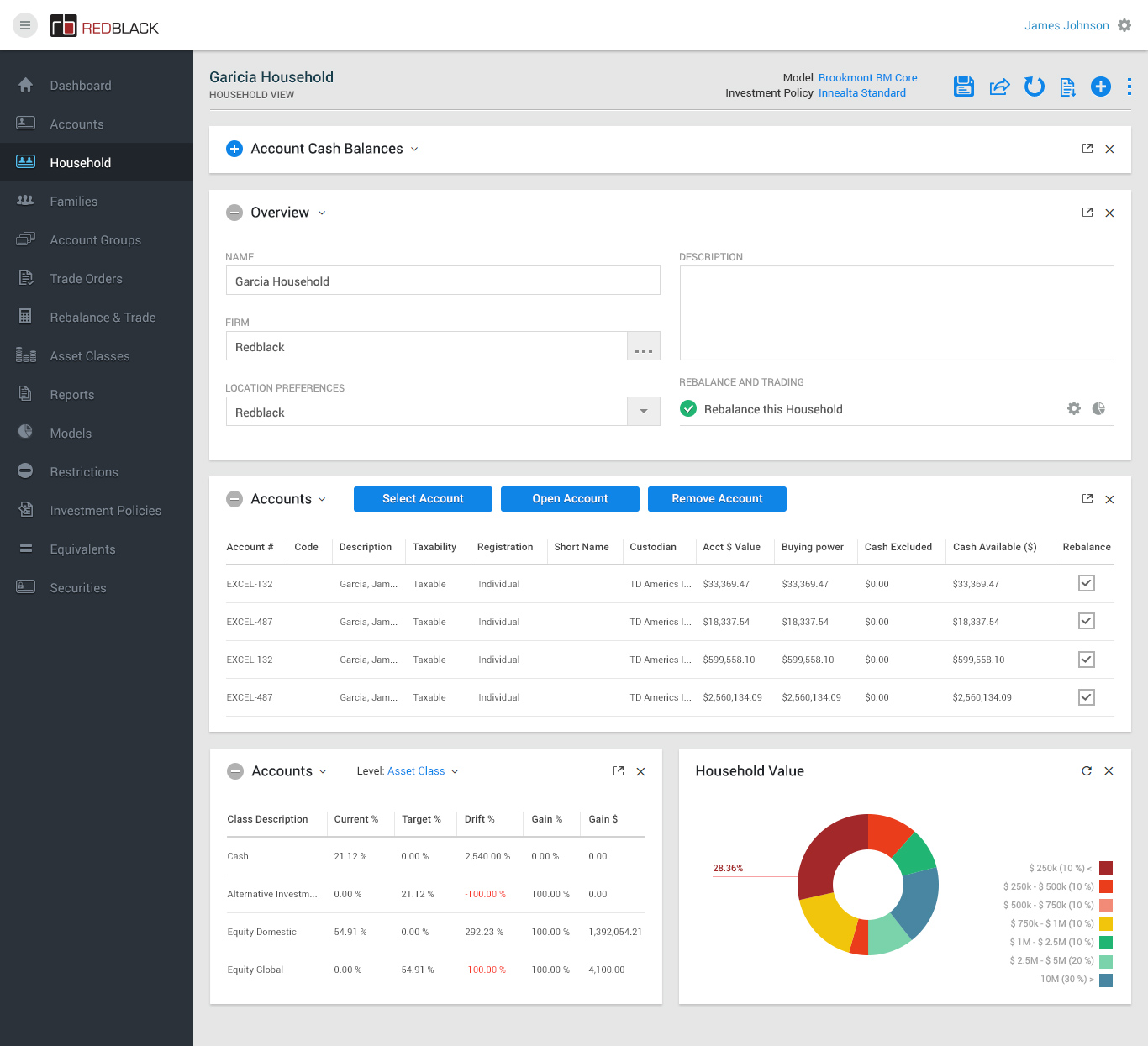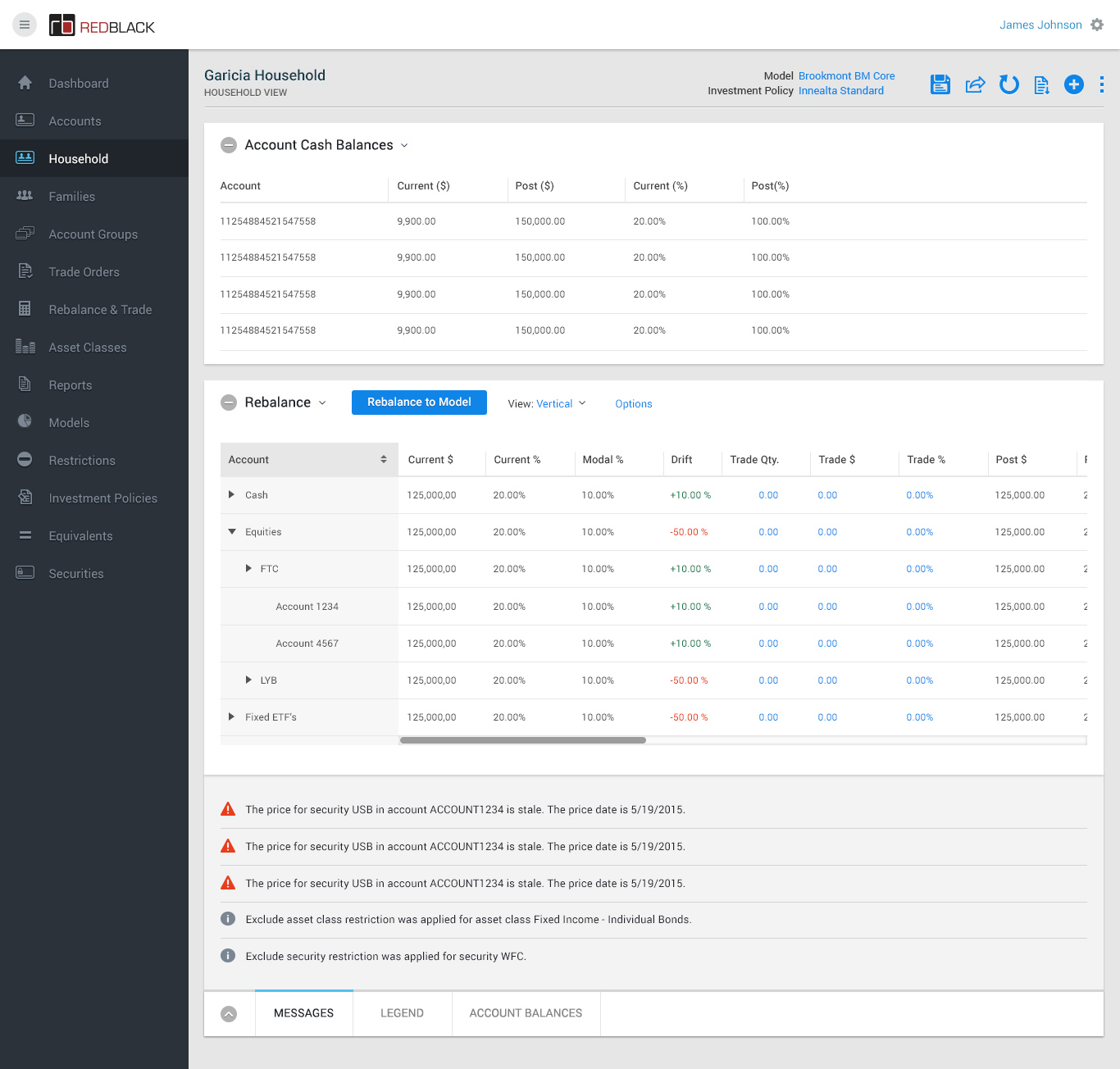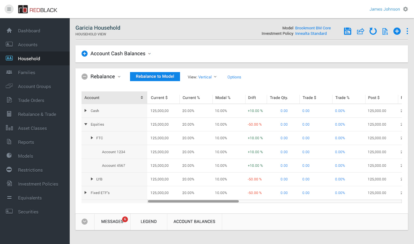 • - Rebalancing all households to model via the Rebalance & Trade module