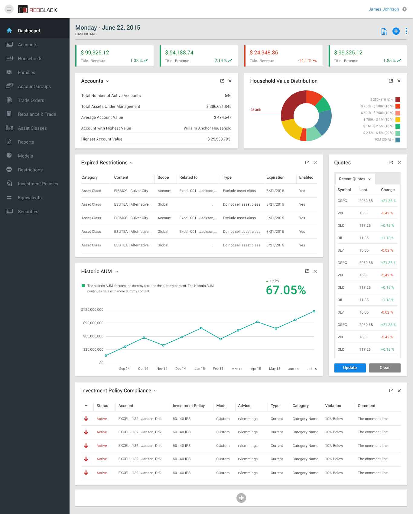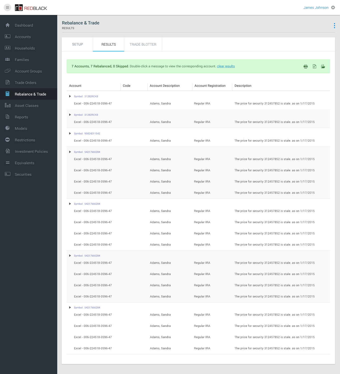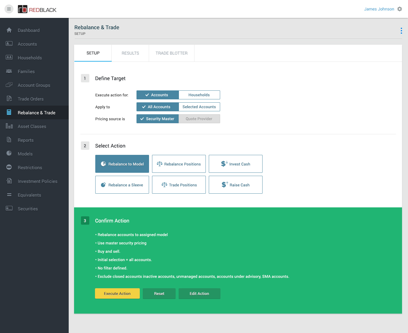 • - Rebalancing all households to model via the Rebalance & Trade module