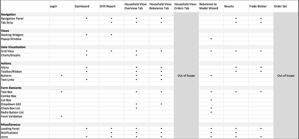 This workflow covers a great deal of interaction paradigms and controls, as shown in the table below.
